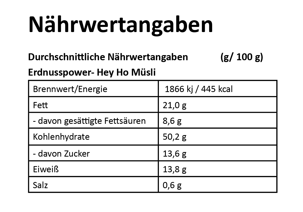 Haferflocken*, Agavensirup*, Erdnussmus*, Kokosfett*, Erdnüsse* (6%), Schokoladen-Chips* (5%) (Kakaomasse*, Rohrzucker*, Kakaobutter*), Lüneburger Salz