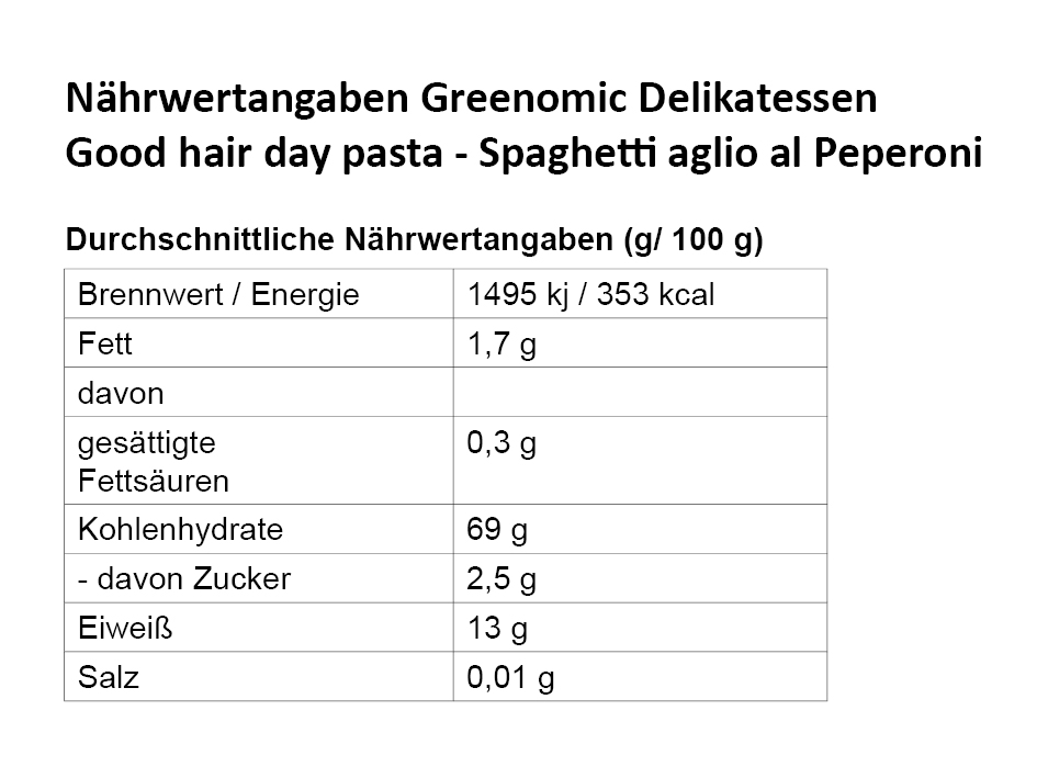 Verantwortliches Lebensmitterunternehmen: Greenomic Delikatessen GmbH & Co. KG, Kornblumenweg 8, 7730 Esslingen