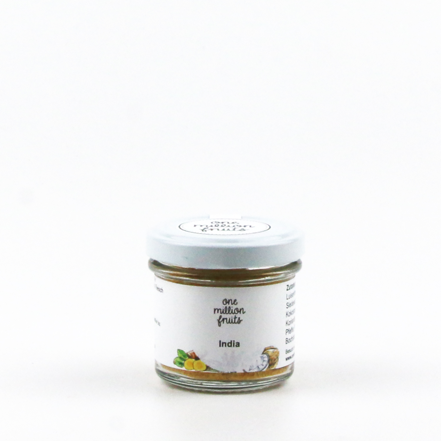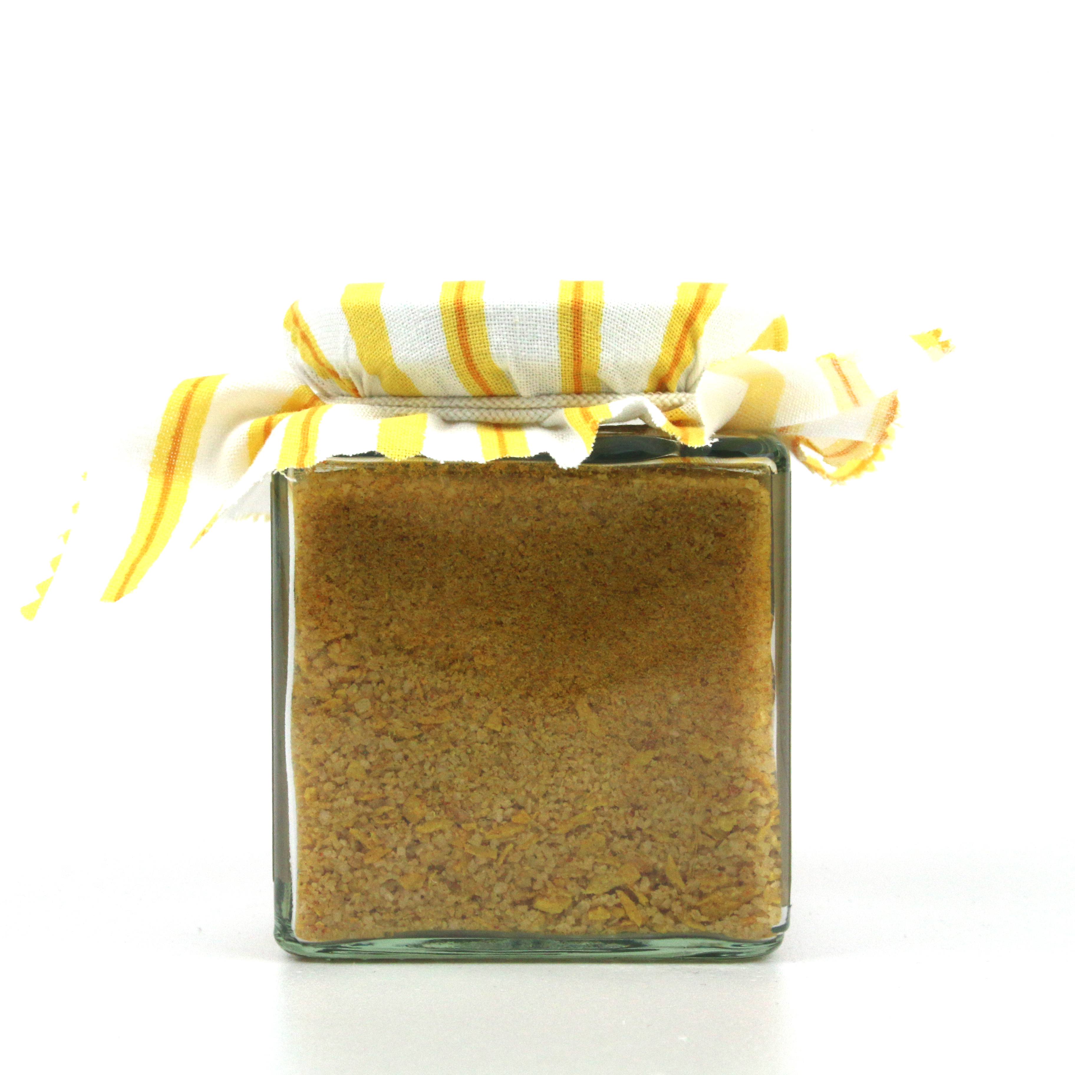 Luisenhaller Siedesalz, Kokosraspeln, Kurkuma, Koriander, Senfpulver, Pfeffer, Kreuzkümmel, Bochshornklee, Chili